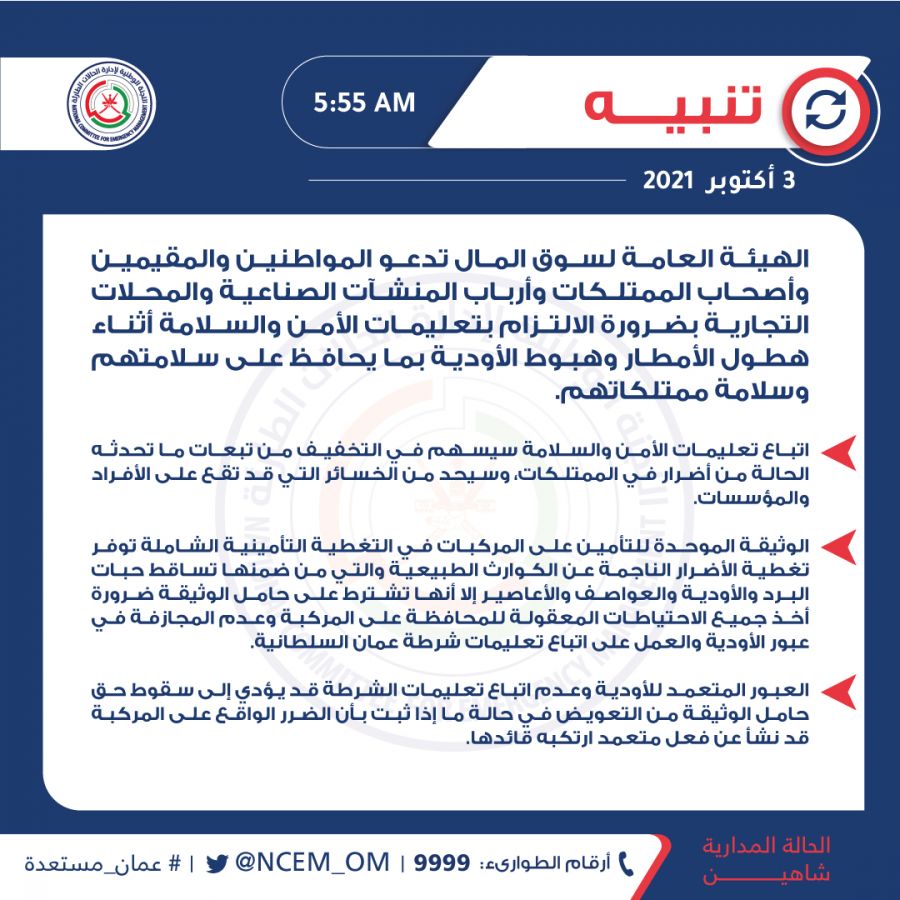 قال الحساب الرسمي لعمان مستعدة أن العبور المتعمد للأودية وعدم اتباع تعليمات الشرطة يؤدي إلى سقوط حق حامل الوثيقة الموحدة للتأمين من التعويض في حالة ثبوت أن الضرر الواقع على المركبة قد نشأ عن فعل متعمد ارتكبه قائدها.