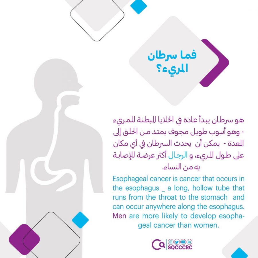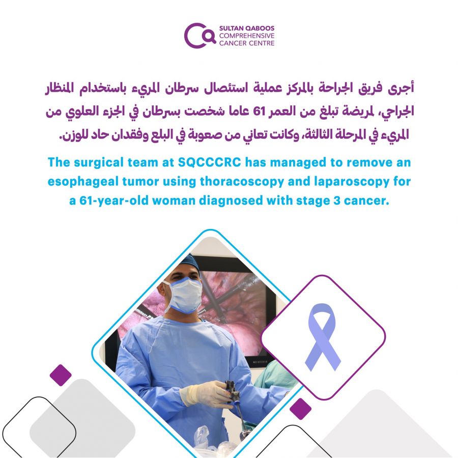 أكد مركز السلطان قابوس المتكامل لعلاج وبحوث أمراض السرطان على أن ٣٥ حالة جديدة يتم تشخيصها بسرطان المريء في السلطنة سنويًا، حسب تقديرات منظمة الصحة العالمية.
