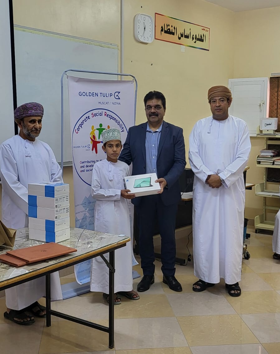 من جانبها، أعربت المدرسة عن شكرها العميق لهذه المبادرة، حيث صرّح أحمد التوبي، مدير مدرسة نور الدين السالمي، قائلاً: « نحن ممتنون للغاية لمجلس إدارة فنادق أوبار وإدارة فندقي جولدن توليب نزوى وجولدن توليب مسقط على دعمهم السخي والتزامهم بنجاح طلبتنا. فهذه المبادرة لا تقتصر على تكريم التميز الأكاديمي فحسب، بل تمكّن طلبتنا أيضاً من الأدوات الرقمية التي يحتاجونها للتفوق في البيئة التعليمية الحديثة. كما أن مثل هذه الشراكات تعزّز الجسر بين المدرسة والمجتمع، ونتطلع إلى استمرار التعاون لما فيه مصلحة طلبتنا».