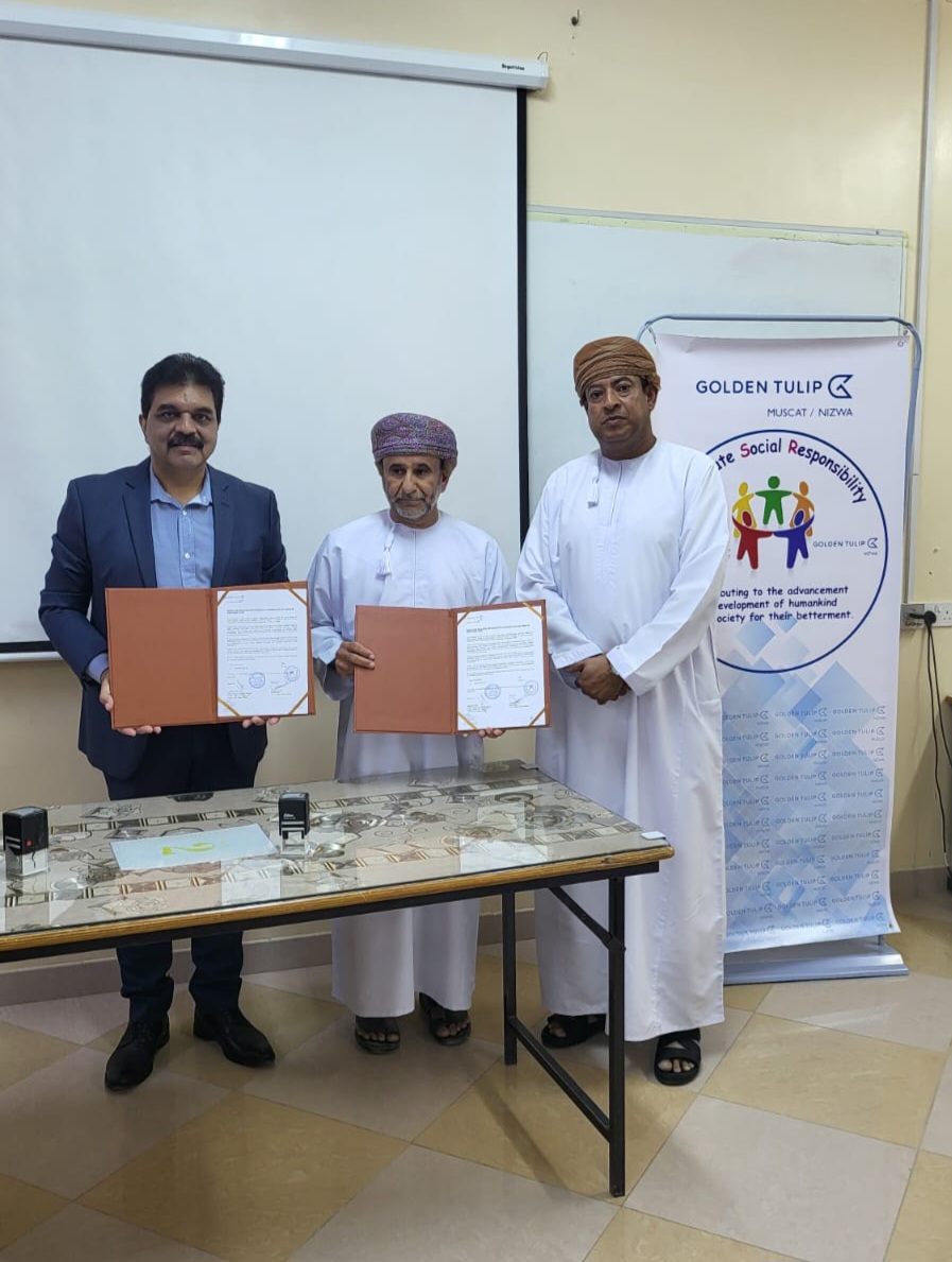وقد تم توقيع الاتفاقية رسمياً في 9 ديسمبر 2025 من قبل سانديب جايتلي، الرئيس التنفيذي والمدير العام لمجموعة فنادق جولدن توليب نزوى - مسقط، وأحمد التوبي، مدير مدرسة نور الدين السالمي – تنوف. وحضر مراسم التوقيع عدد من أعضاء فريق إدارة فندق جولدن توليب، في تأكيد على الدعم الجماعي الذي يوليه الفندق لتنمية المجتمع.