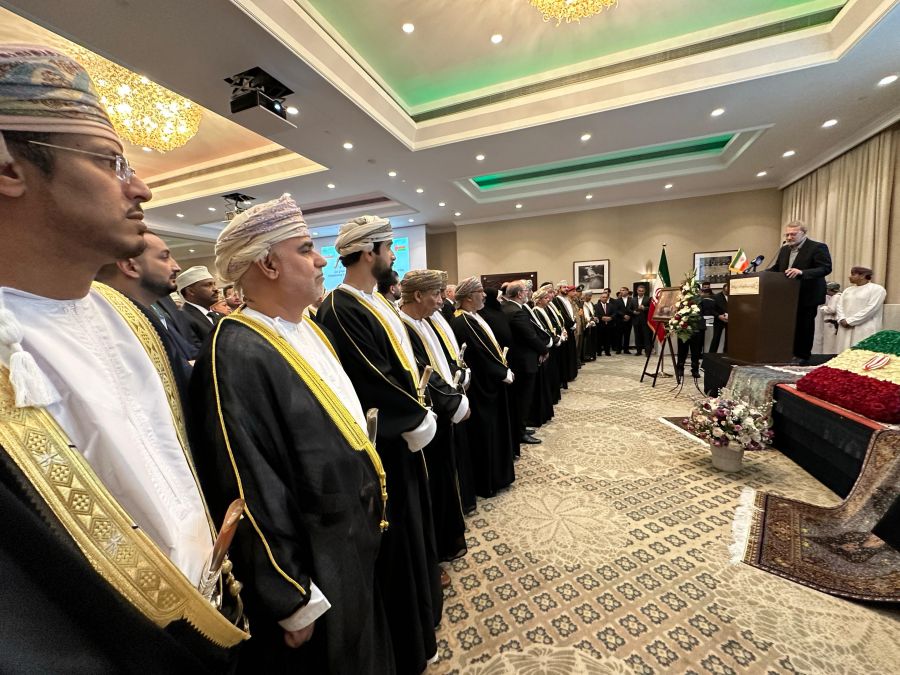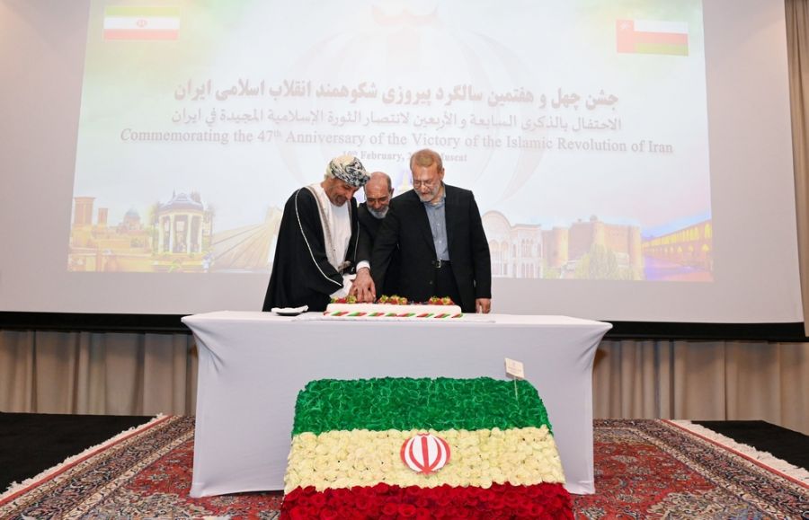 احتفلت سفارة الجمهورية الإسلامية الإيرانية المعتمدة لدى سلطنة عمان مؤخراً بمناسبة اليوم الوطني للجمهورية، والذي يصادف الذكرى السابعة والأربعين على الثورة الإسلامية المجيدة في إيران. وذلك برعاية معالي السيد حمود بن فيصل البوسعيدي، وبحضور معالي الدكتور علي لاريجاني، أمين المجلس الأعلى للأمن القومي بالجمهورية الإسلامية الإيرانية، كما حضر الحفل الذي أقيم بفندق كراون بلازا مسقط عدد من المسؤولين بسلطنة عُمان ورؤساء البعثات الدبلوماسية المعتمدين لدى سلطنة عُمان، وعدد من المسؤولين بوزارة الخارجية.
