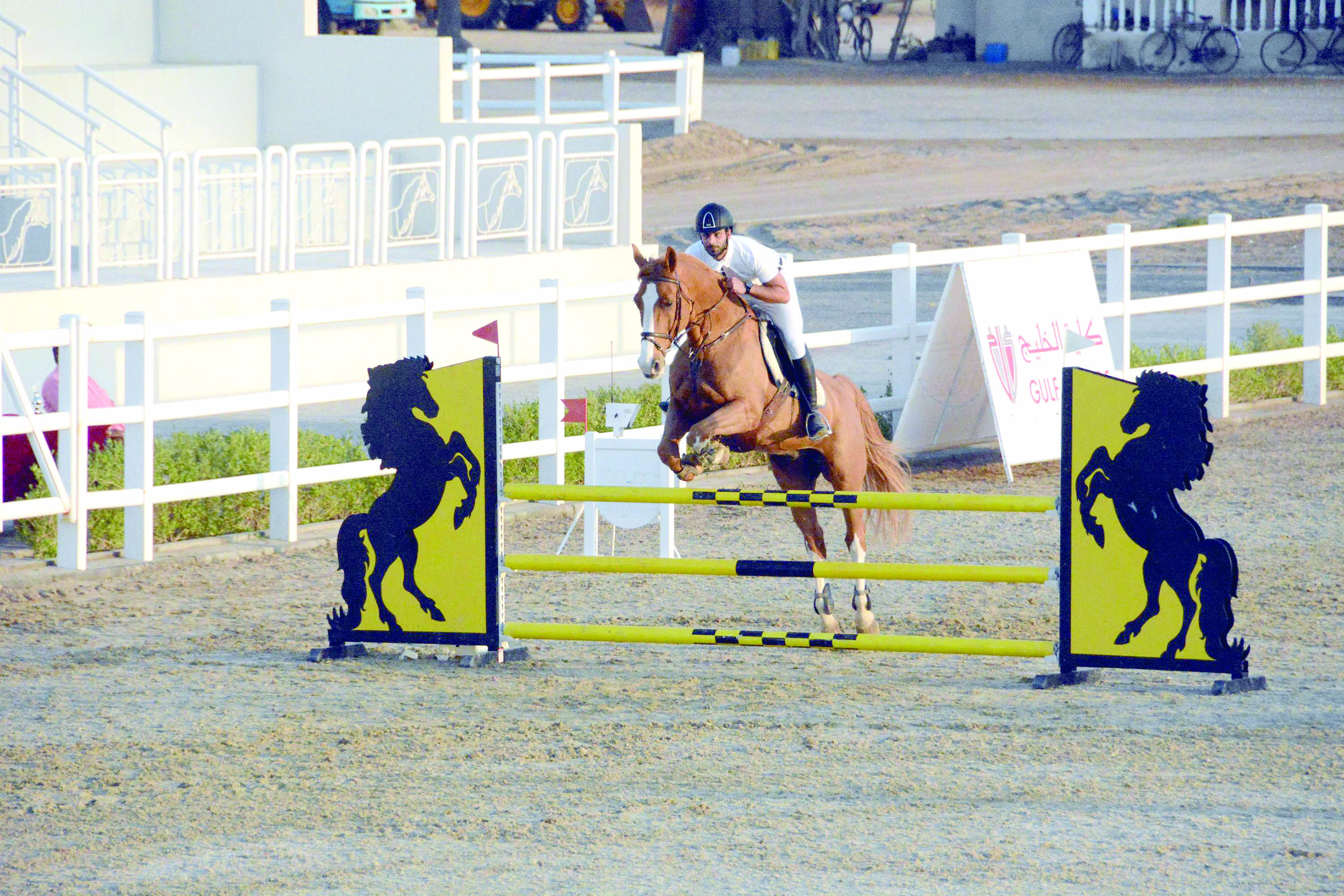 الخميس ١٥/فبراير/٢٠١٨ ٠٤:١٩ ص منافسة جميلة في الجائزة الكبرى لقفز الحواجز بركاء - انطلق على ميدان مزرعة الرحبة بولاية بركاء اليوم الأول من بطولة الجائزة...