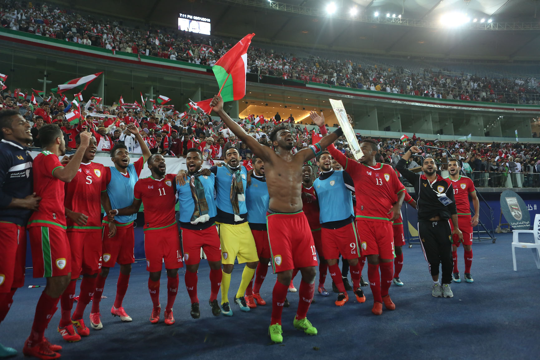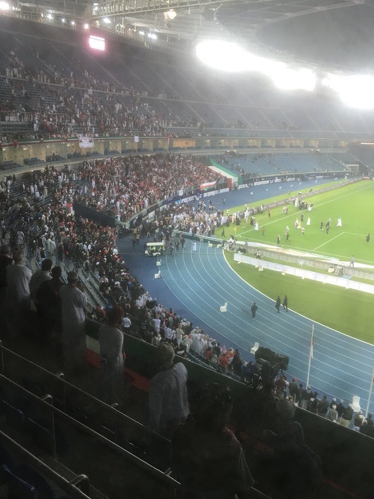 السبت ٠٦/يناير/٢٠١٨ ٠٢:٣٩ ص بالفيديو.. انهيار الحاجز الزجاجي في استاد جابر ووقوع بعض الإصابات تسبب أنهيار الحاجز الزجاجي في أستاد جابر الدولي خلال احتفالات الجماهير العمانية بلقب...