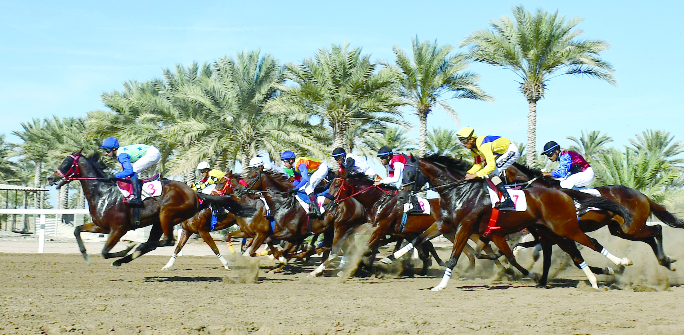 الأحد ١٠/ديسمبر/٢٠١٧ ٠٣:٣٤ ص في سابع سباقات الخيل السلطاني «ثنائية» للفارسين السيابي واليحيائي بركاء - حمود العامري تألق الفارسان سعيد اليحيائي وأنس السيابي بفوزهما بالمركز الأول...