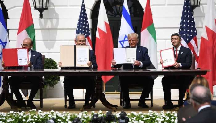 الأربعاء ١٦/سبتمبر/٢٠٢٠ ٠٢:٤٨ ص توقيع معاهدة سلام بين الإمارات وإسرائيل وعبدالله بن زايد يصفه بـ "إنجاز تاريخي" الشبيبة - وكالات دولة الإمارات العربية المتحدة و إسرائيل توقعان في البيت الأبيض...