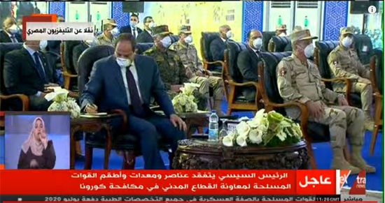 الثلاثاء ٠٧/أبريل/٢٠٢٠ ١٩:٥٧ م الرئيس المصري يظهر بـ"الكمامة" لأول مرة خلال تفقده عناصر الجيش المخصصة لمكافحة كورونا مسقط - وكالات ظهر الرئيس عبد الفتاح السيسي، لأول مرة يرتدي كمامة، وذلك خلال تفقده...