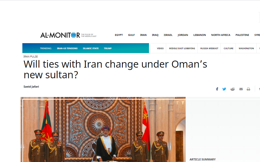 الأربعاء ١١/مارس/٢٠٢٠ ١٧:٥٠ م "المونيتور" تبرز متانة العلاقات بين السلطنة وإيران ترجمة - الشبيبة سلط موقع صحيفة "المونيتور" البريطانية، والمعنية بقضايا الشرق...