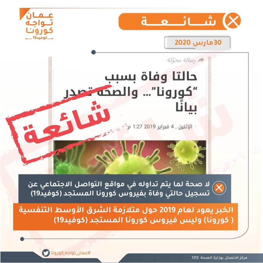 الاثنين ٣٠/مارس/٢٠٢٠ ١٧:٠٩ م تسجيل حالتي وفاة بفيروس كورونا ..شائعة مسقط - الشبيبة نفى الحساب الرسمي على "تويتر" لعمان تواجه كورونا ما يتم تداوله في...