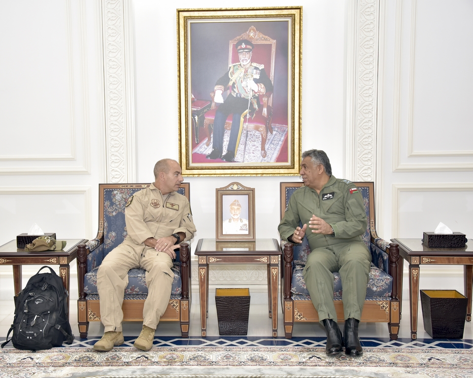 الاثنين ١٩/مارس/٢٠١٨ ١٨:٥٣ م العبيداني يستقبل قائد القوات الجوية بالقيادة الوسطى الأمريكية مسقط - ش استقبل اللواء الركن طيار مطر بن علي العبيداني قائد سلاح الجو السلطاني العماني...
