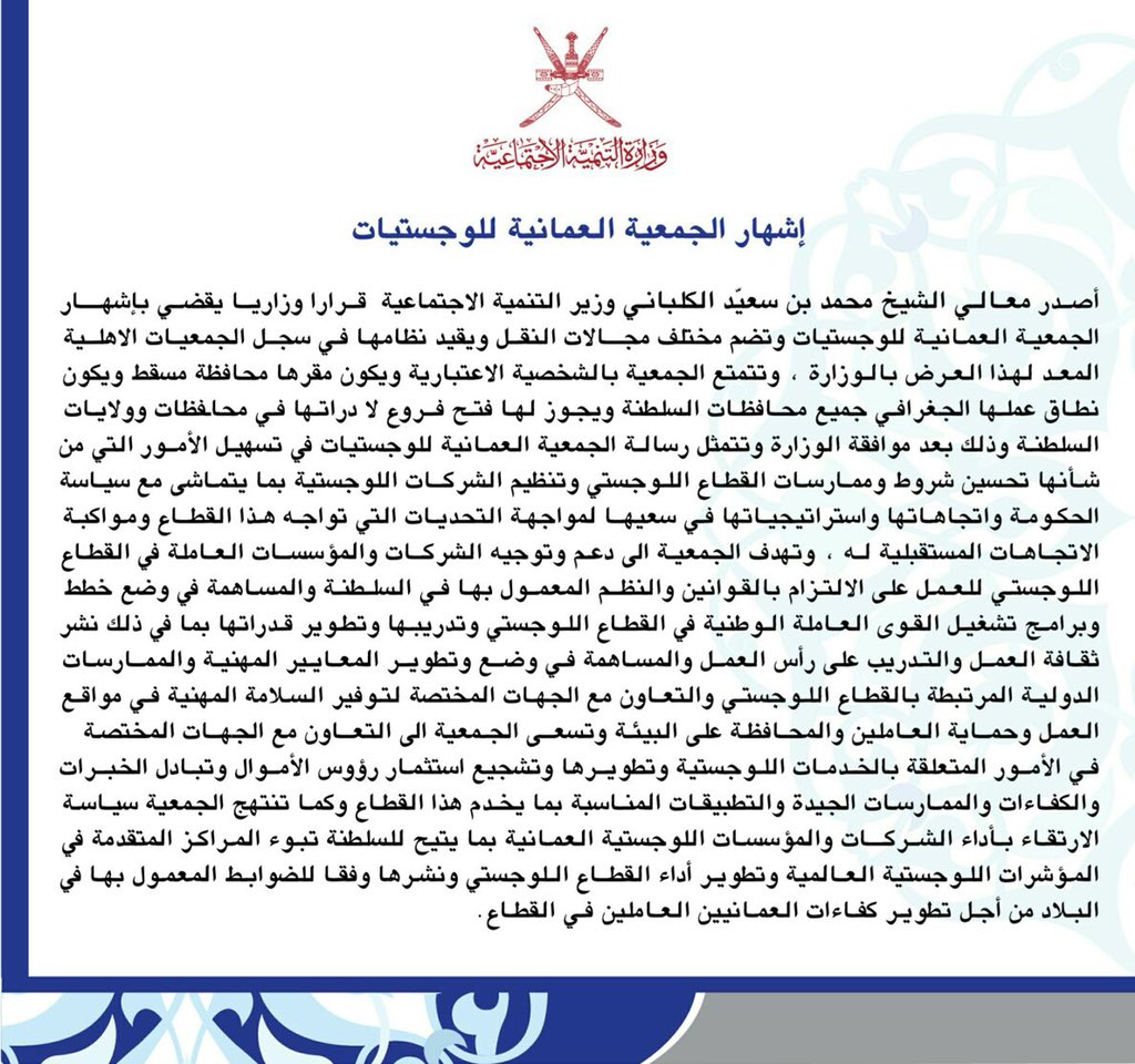 الاثنين ١٢/مارس/٢٠١٨ ١٤:٥١ م وزير التنمية الاجتماعية يصدر قرارًا وزاريًا أصدر معالي الشيخ محمد بن سعيد الكلباني وزير التنمية الاجتماعية قراراً وزارياً بإشهار...