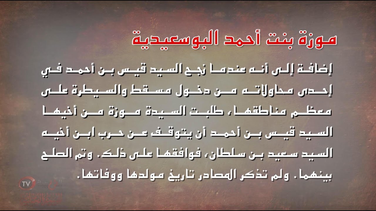 الأحد ٢٩/يناير/٢٠١٧ ١٣:٤٥ م الموسوعة العمانية: موزة بنت أحمد البوسعيدية .. سياسية عمانية غيورة على وحدة وطنها مسقط - ش كانت على قدر كبير من قوة الشخصية والحكمة والسياسة، وصفتها السيدة سالمة بنت...
