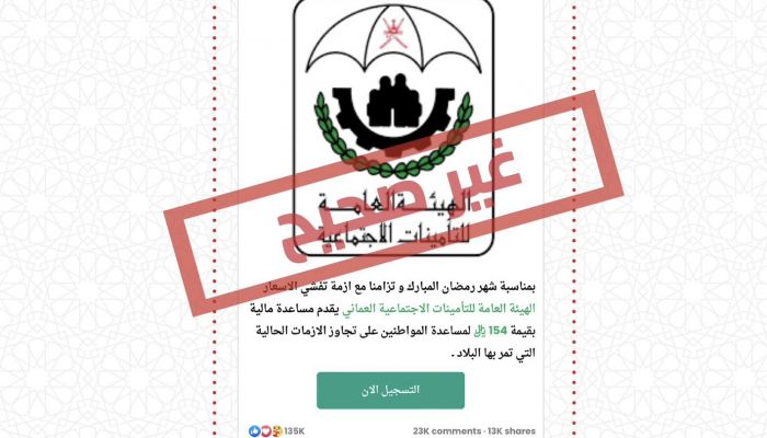 الثلاثاء ٠٤/أبريل/٢٠٢٣ ١٣:١٠ م التأمينات الاجتماعية تنفي شائعة متداولة مسقط- الشبيبة نفت الهيئة العامة للتأمينات الاجتماعية ما يتم تداوله حول صرف مساعدة...
