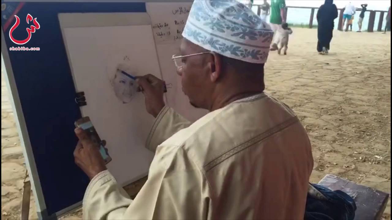 الفنان سالم المحروقي من ذوي الاحتياجات الخاصة .. يرسم على شاطئ المغسيل