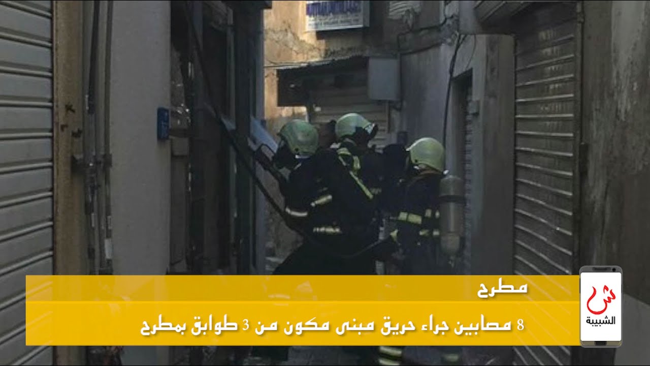 ثمانية مصابين جراء حريق مبنى بمطرح