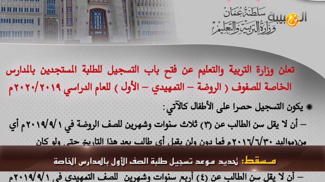 الأربعاء ٠٢/يناير/٢٠١٩ ٢٢:١٠ م بالفيديو: علوم اليوم - تحديد موعد تسجيل طلبة الصف الأول بالمدارس الخاصة