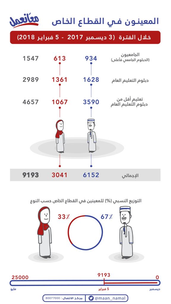 الأربعاء ٠٧/فبراير/٢٠١٨ ١٩:٢٤ م بالأرقام والرسم التوضيحي.. تعرف على المعينين في القطاع الخاص **media[821390]**