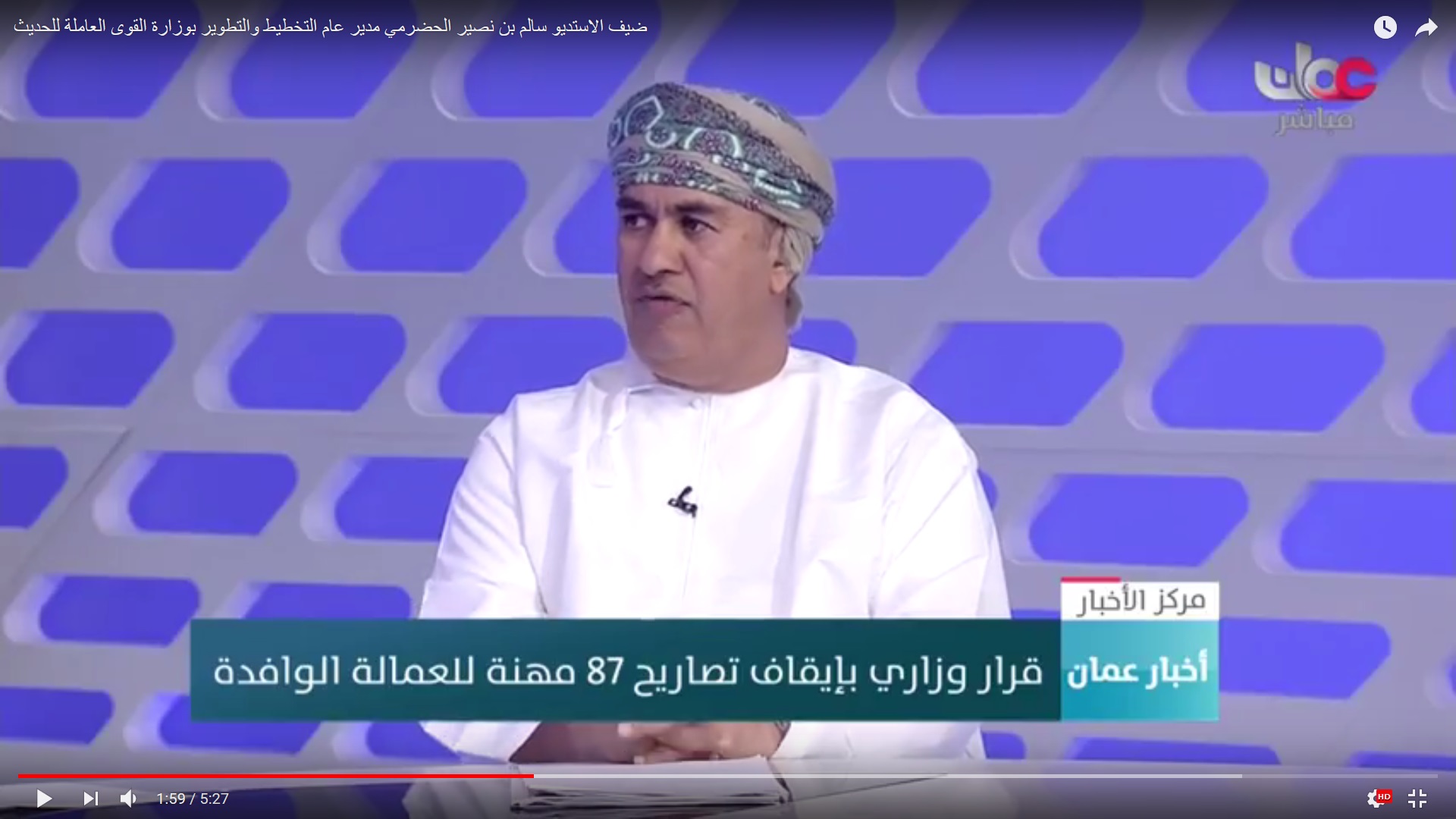 الأحد ٢٨/يناير/٢٠١٨ ٢٣:٠٦ م بالفيديو.. مسؤول بالقوى العاملة يوضح طبيعة قرار إيقاف تصاريح 87 مهنة للوافدين