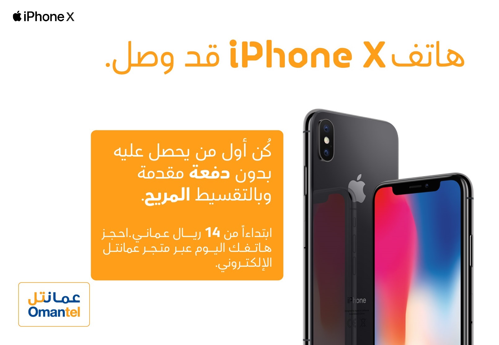 الخميس ٢٣/نوفمبر/٢٠١٧ ١٦:٠٥ م عمانتل تبشر زبائنها: آيفون X وصل مسقط - ش أعلنت عمانتل عن قرب طرح جهاز iPhone X مستقبل الهاتف الذكي وذلك ابتداءً من 1 ديسمبر...