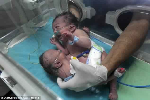 الاثنين ٢٣/أكتوبر/٢٠١٧ ١٤:٢٧ م بالصور.. توأم غزة الملتصق يبحث عن الحياة تحت الحصار! مسقط - ش شهد قطاع غزة مولد توأم ملتصق من النوع المعقد، الذي يحتاج لرعاية من نوع خاص...