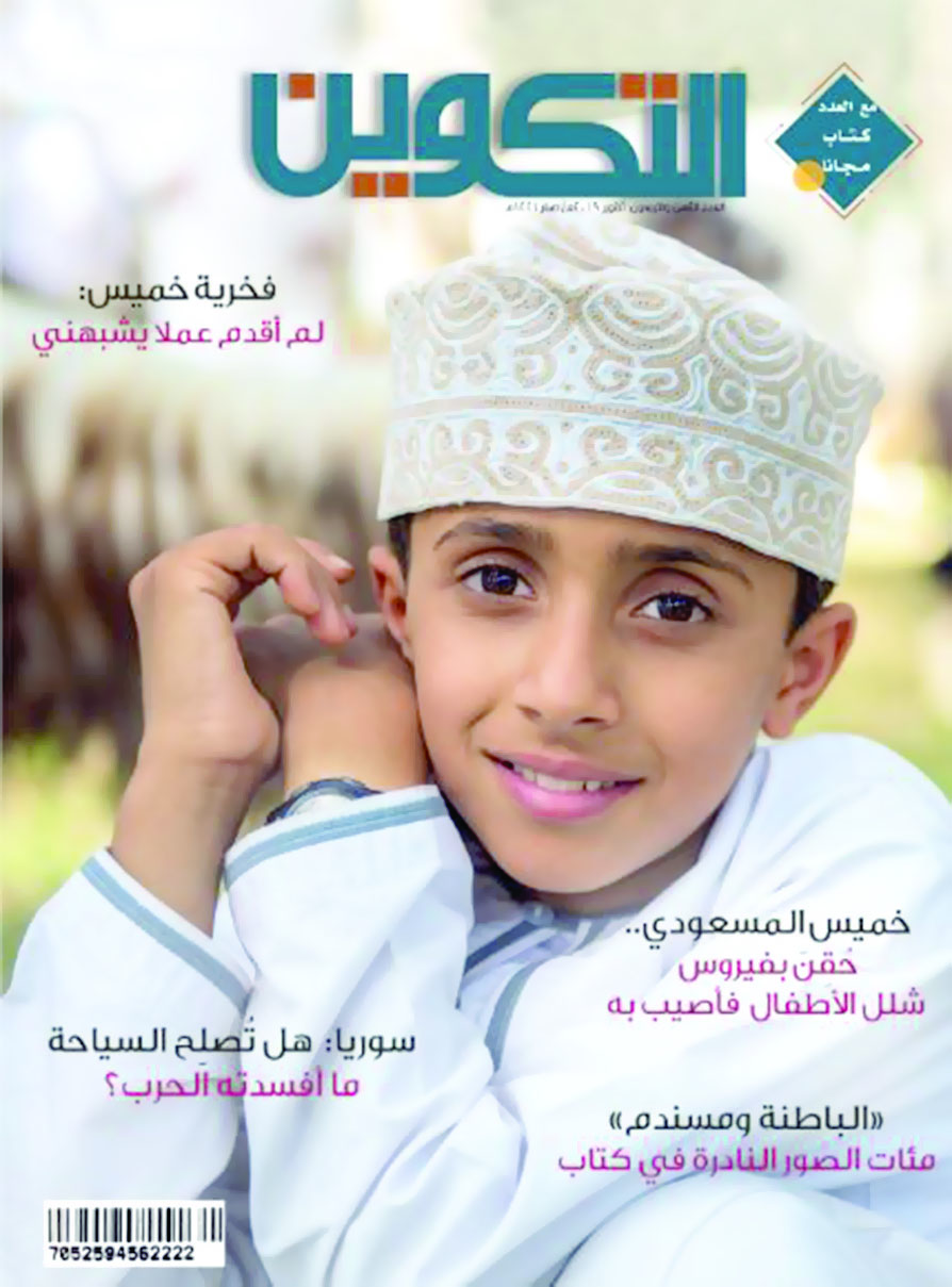 الاثنين ١٤/أكتوبر/٢٠١٩ ١٣:٥٩ م "التكوين" تنهي عامها الرابع بعدد نوعي مسقط - الشبيبة وهي تستعد لدخول سنتها الخامسة الشهر المقبل، تقدم مجلة «التكوين»...